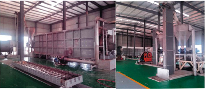 環(huán)保金礦選礦劑的生產(chǎn)是要求將五種固體原料按照一定的配比要求,進(jìn)行高溫長時間的混合反應(yīng)后,在高溫段轉(zhuǎn)化成高溫液體,經(jīng)過冷卻并機械破碎后轉(zhuǎn)化成固體小顆粒,包 裝出廠銷售與使用。其中,需要經(jīng)過高溫反應(yīng)與混合的物料 有三種,另外兩種物料在粉碎后另外添加并混合均勻。